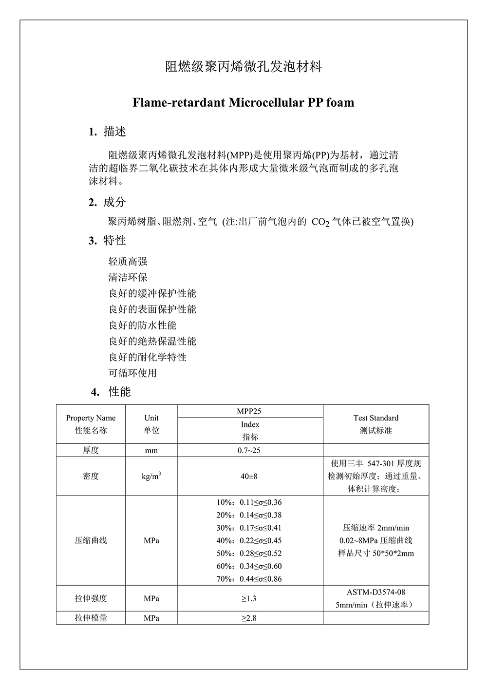 聚丙烯微孔發泡MPP產品規格書